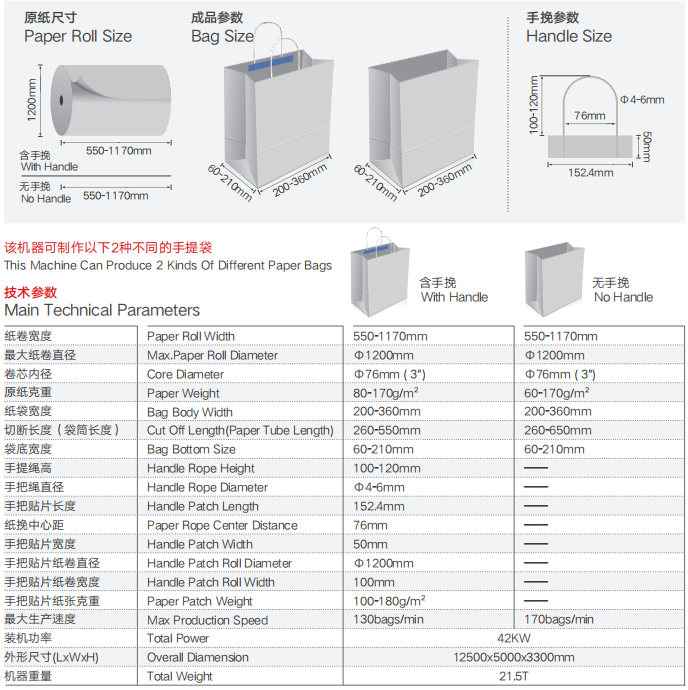 | 紙袋長(zhǎng)度 | 235-490mm | 235-540mm | 235-490mm | 235-490mm |